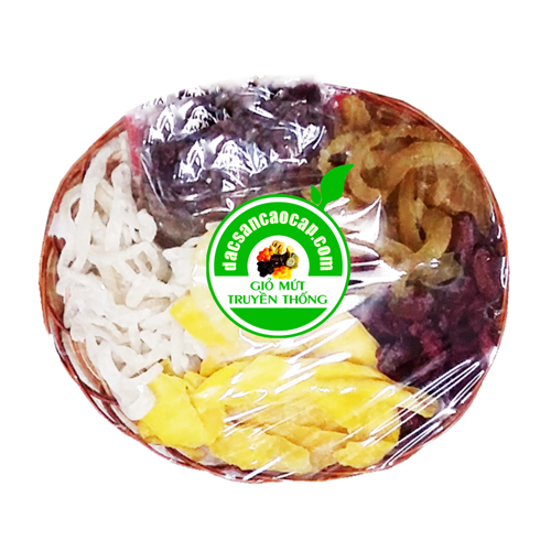 Giỏ Mứt truyền thống thơm ngon bao gồm 06 loại xoài, thơm, dâu vỏ bưởi, hạt dưa được chế biến tại Việt Nam với qui trình công nghệ hiện đại theo tiêu chuẩn an toàn thực phẩm, không sử dụng chất bảo quản, không ướp hóa chất hay bất cứ phụ gia nào. Giỏ mứt thuộc dòng đặc sản cao cấp rất được ưa chuộng vì sự tiện lợi, gọn nhẹ, hương vị thơm ngon tự nhiên và rất an toàn.