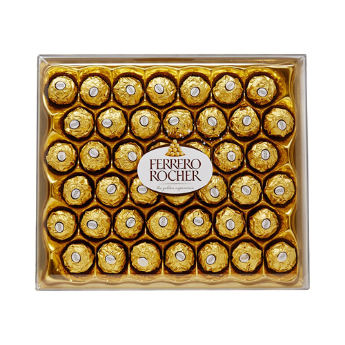Kẹo Chocolate Ferrero Rocher 48 viên được tạo thành bởi nhiều lớp đan xen nhau: lớp ngoài cùng là chocolate nghiền với hạnh nhân, tiếp theo là một lớp bánh mỏng, giòn, tan ngay trong miệng. Bên trong lớp vỏ bánh là chocolate nguyên chất và cuối cùng là quả hạnh nhân. Mỗi viên có mùi vị giống nhau, được bọc bởi vọc màu vàng như một viên ngọc quý. Đây chắc chắn là sự lựa chọn hoàn hảo khi góp mặt trong các giỏ quà tặng.